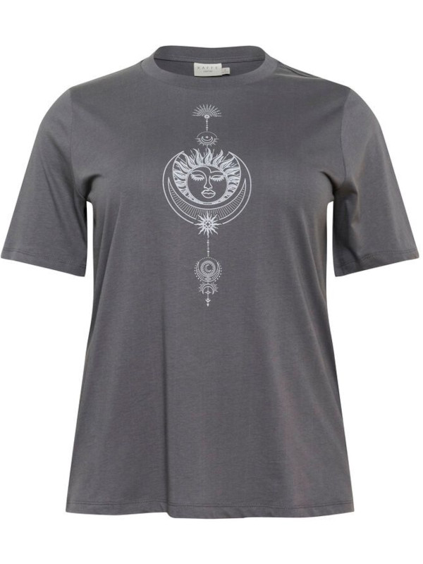 Grå t-shirt i grått med vitt mönster som har rund hals och kort ärm.